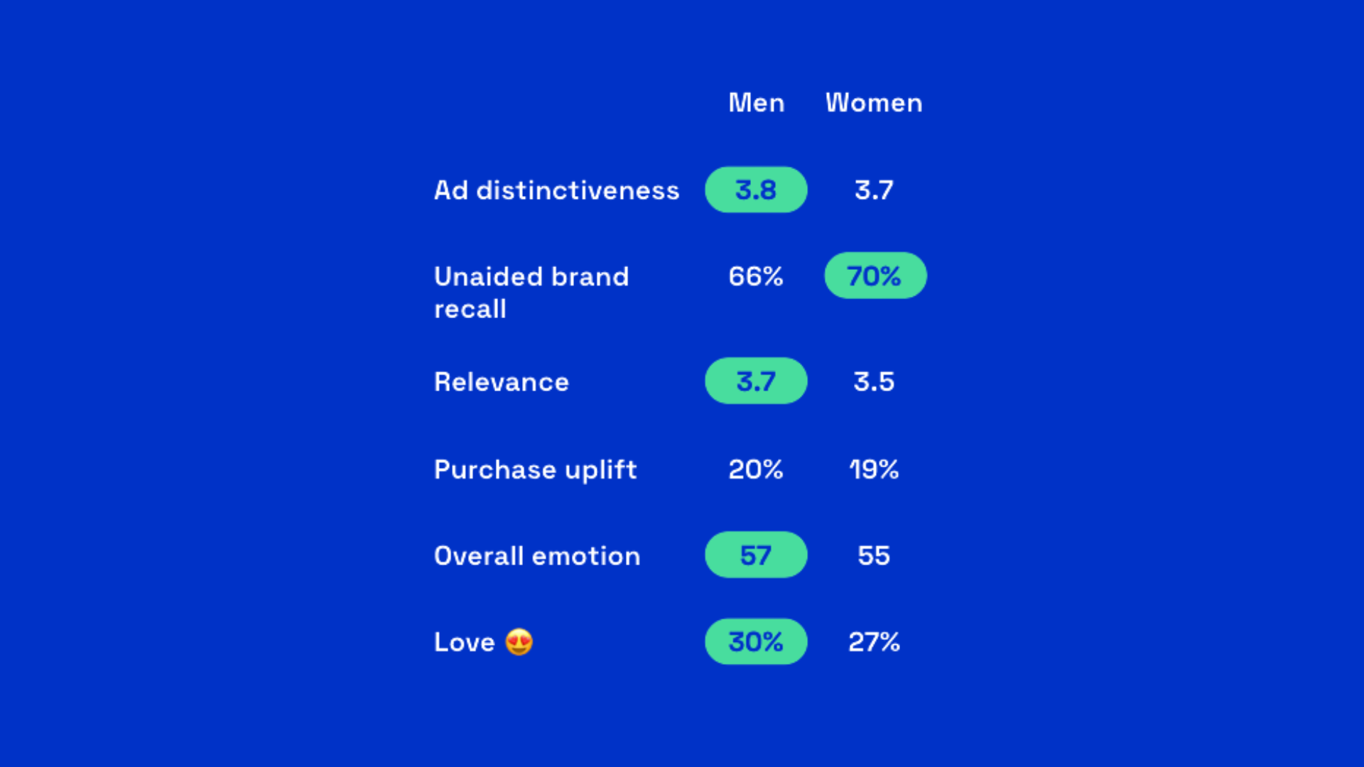 One notable difference to consider, however, is with brand recall: Women have a higher overall brand recall than men.