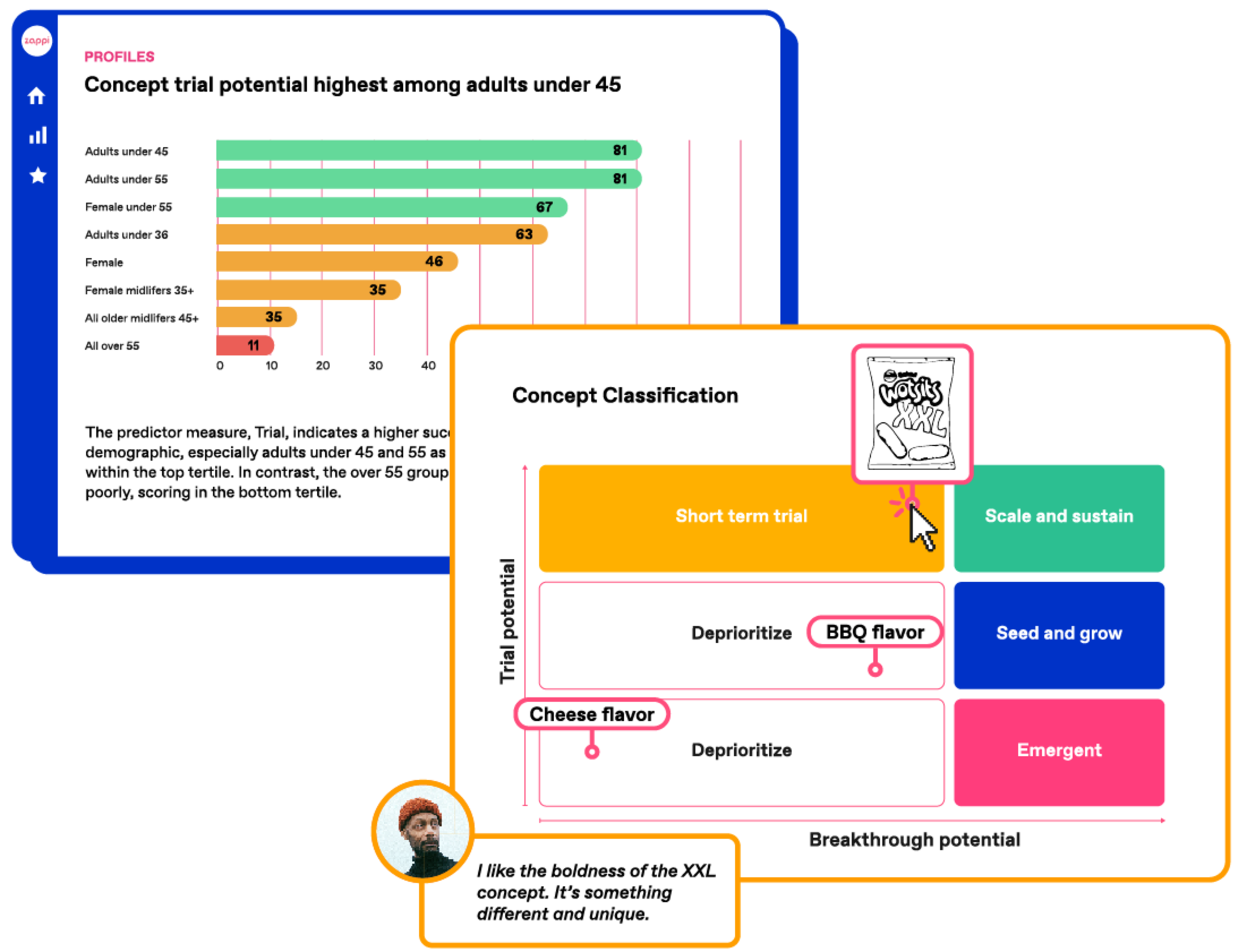 Amplify the power and value of consumer feedback for competitive advantage with a connected system. With Zappi, you can spot the most compelling opportunities through a unique lens of harmonized data using tagging & clever data structures. All in just a few clicks.