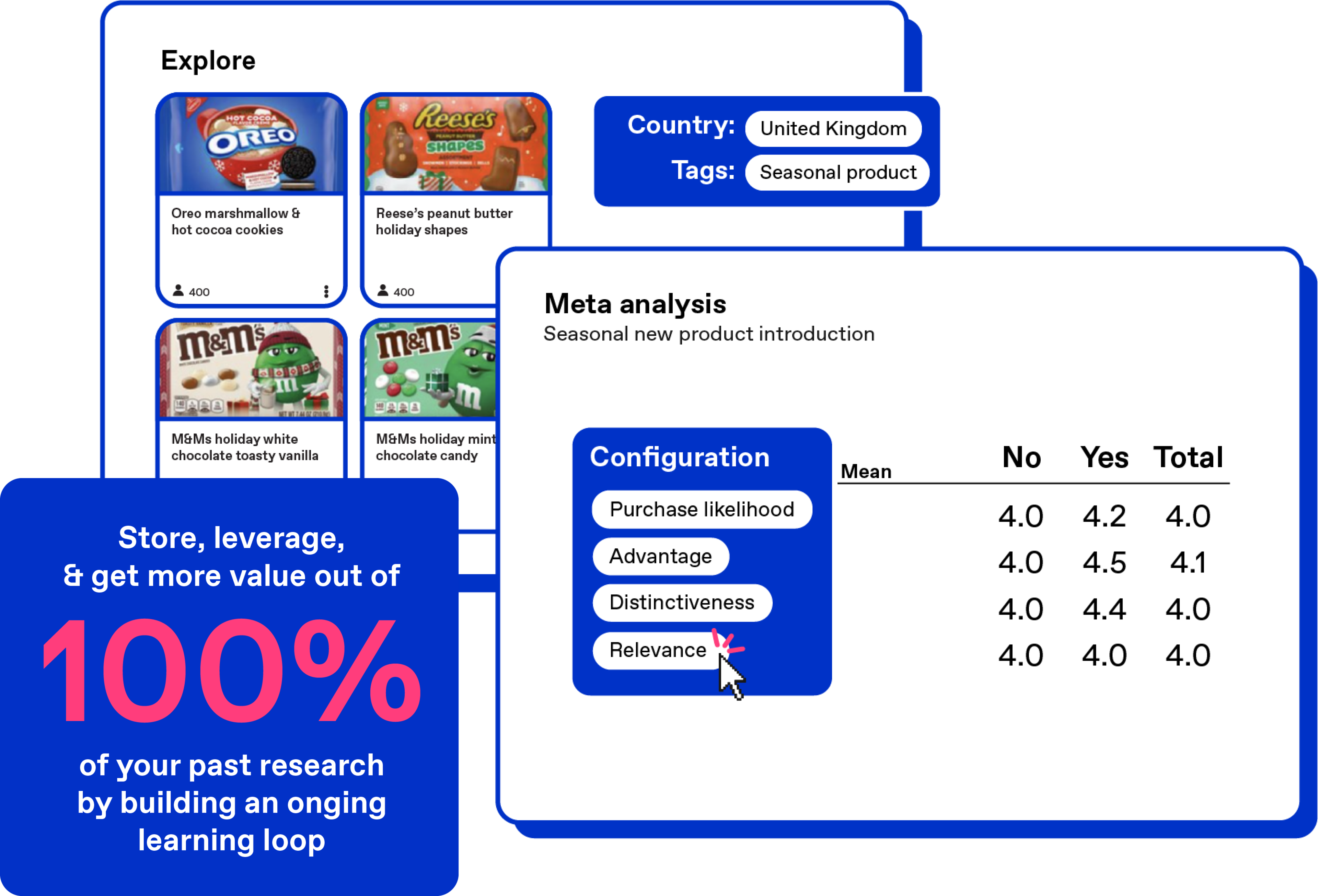 Best-in-class tools to test key drivers of success and bring consumer insight into every phase of product development - proven to deliver a 4β7% increase in new product revenue. Learn and iterate quickly and continuously, course-correct early, and bring new products to market with confidence.